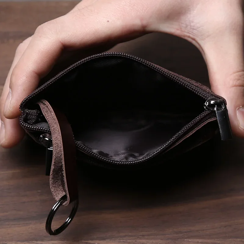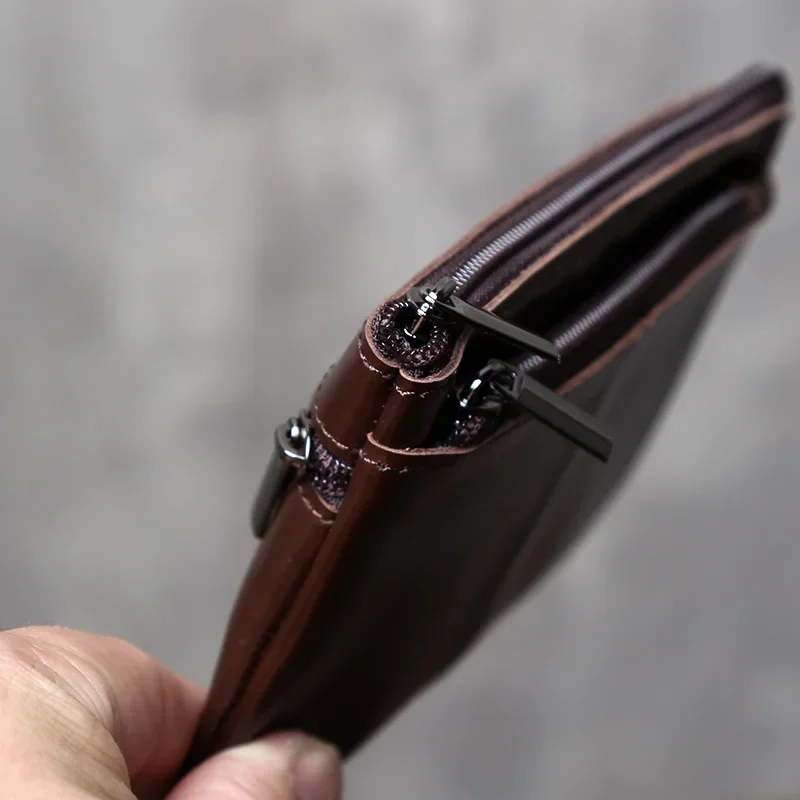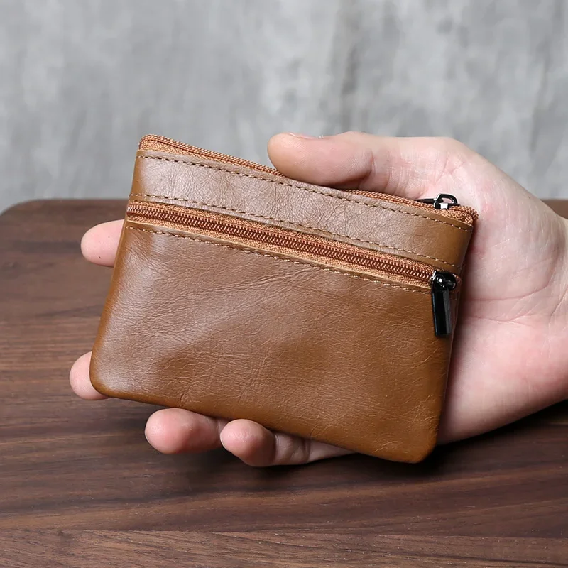 Handmade Genuine Leather Small Wallet, Business Card Bag, Top Layer, Cowhide Simple Zipper, Driver’s License Bag, Bus Card Bag