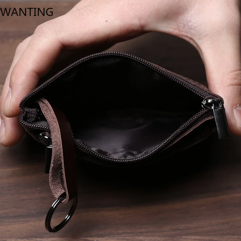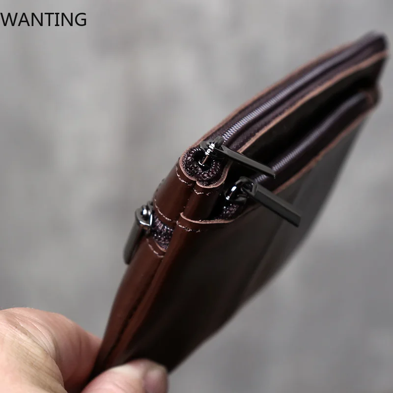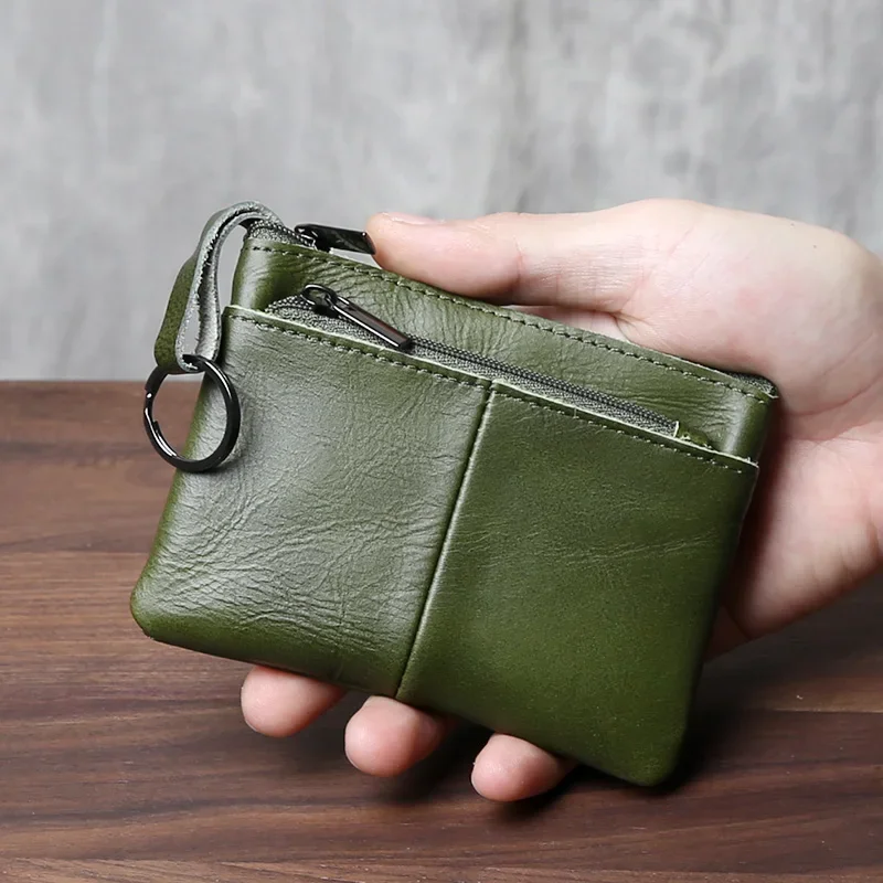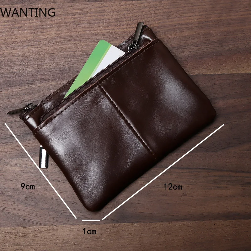 Handmade Genuine Leather Small Wallet, Business Card Bag, Top Layer, Cowhide Simple Zipper, Driver’s License Bag, Bus Card Bag