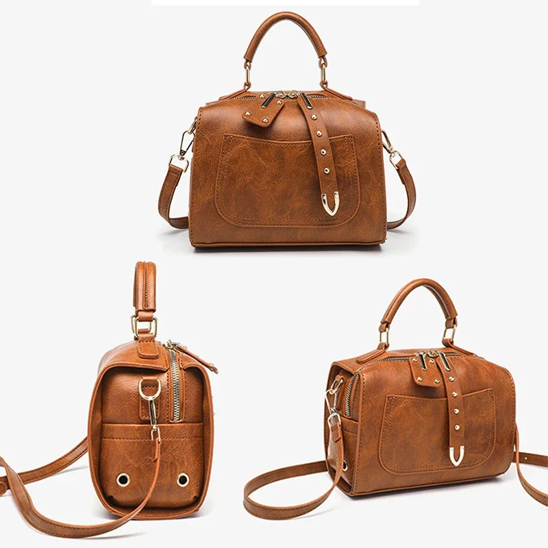 Retro Style Women’s Bags 2025 New Luxury Boston Crossbody Bag Fashion PU Leather Women Handbags 8239LZF